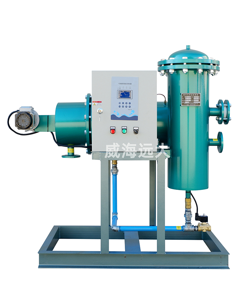 當(dāng)水從管道旁路進(jìn)水口進(jìn)入過(guò)濾器濾筒內(nèi)部,雜質(zhì)被攔截在過(guò)濾筒內(nèi)壁,過(guò)濾后的干凈水從出水口流出,當(dāng)濾筒內(nèi)壁的雜質(zhì)積累到一定數(shù)量,過(guò)濾器進(jìn)出口的壓差達(dá)到預(yù)設(shè)值、達(dá)到清洗時(shí)間或手動(dòng)預(yù)制時(shí),過(guò)濾器將開(kāi)始自清洗過(guò)程,清洗時(shí)系統(tǒng)不斷流。 旁流處理器的整個(gè)運(yùn)行過(guò)程由隨機(jī)配備的一個(gè)智能控制箱來(lái)控制。